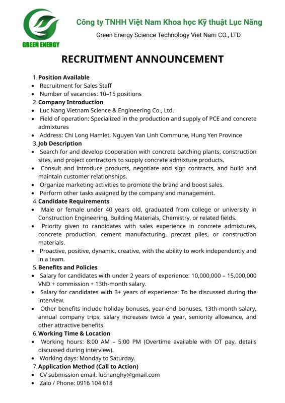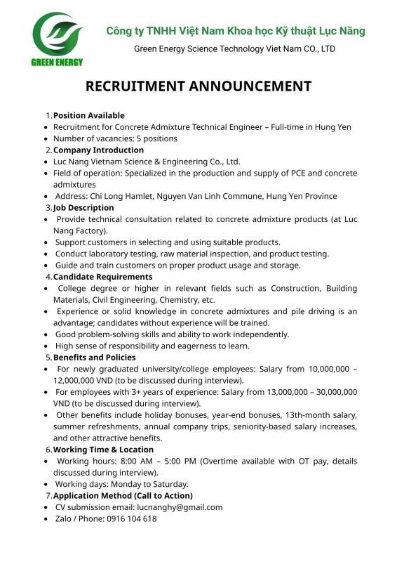 GREEN ENERGY VIET NAM CONCRETE ADMIXTURES COMPANY